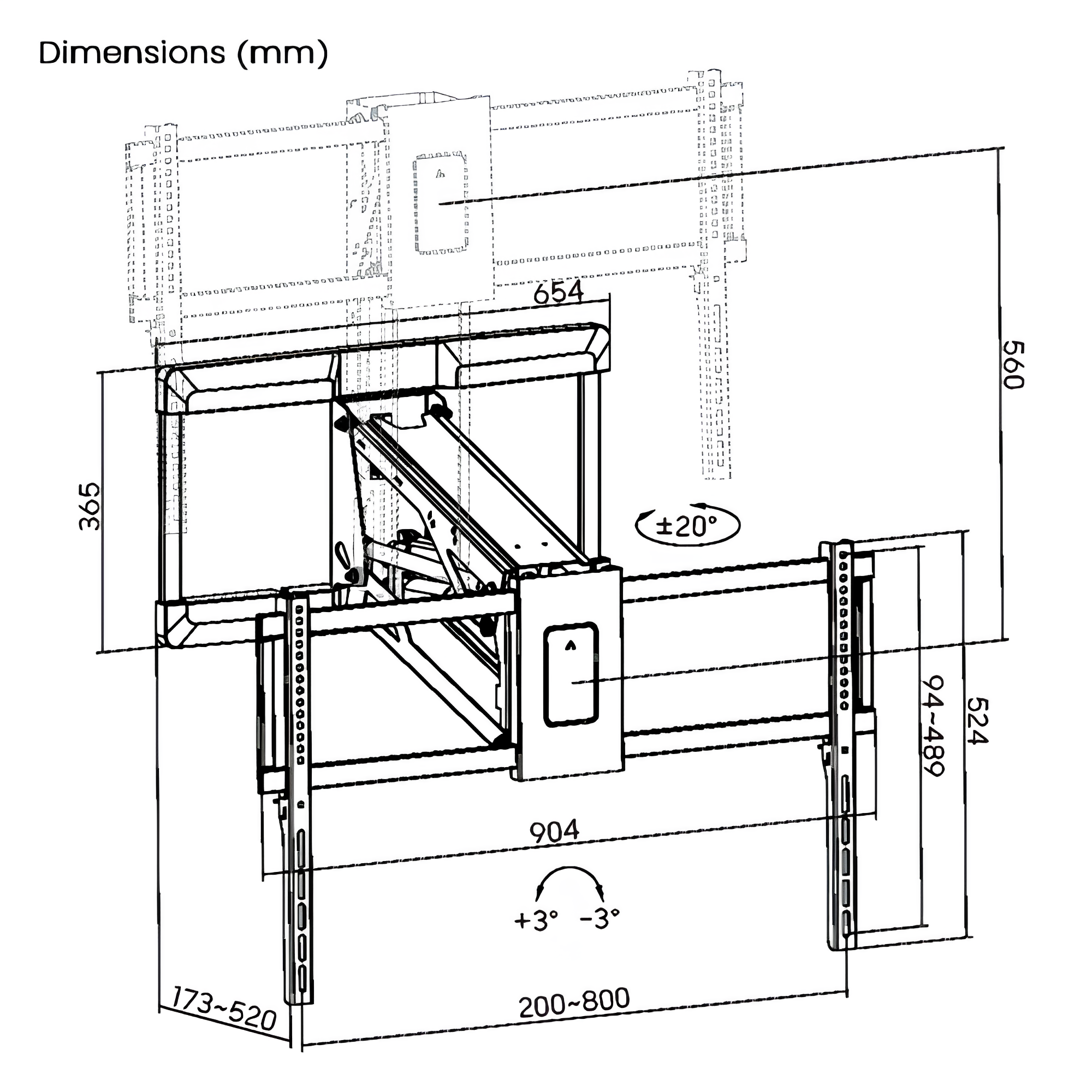 | Swivel Range: | +20°~-20° |